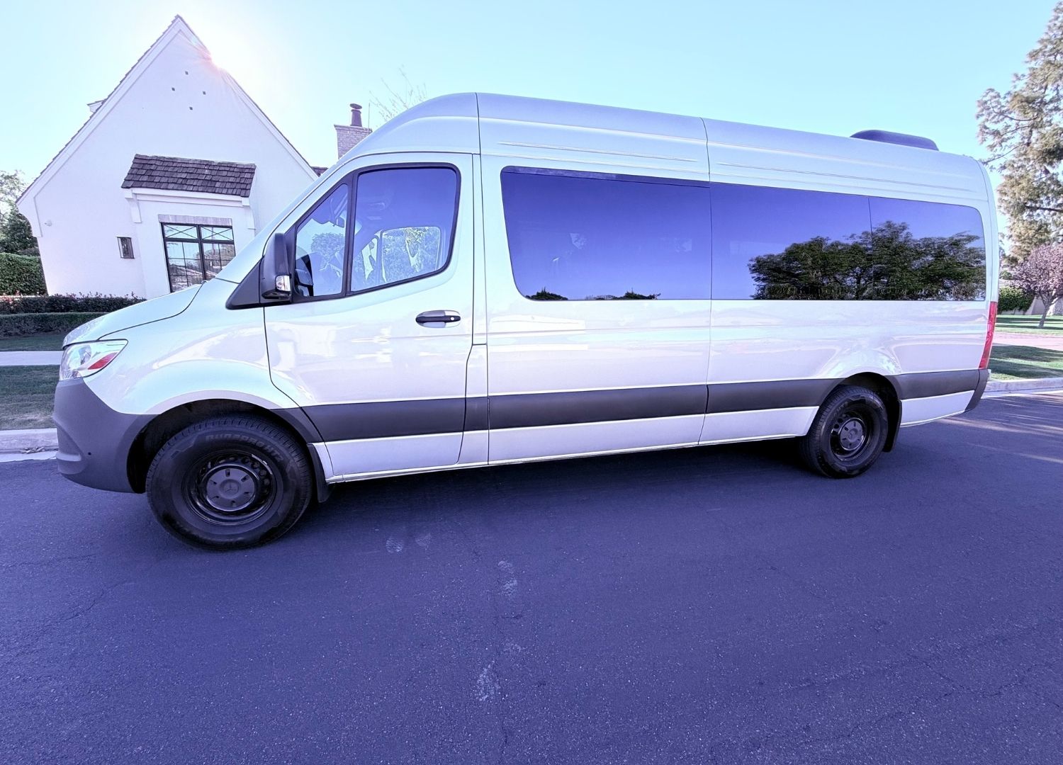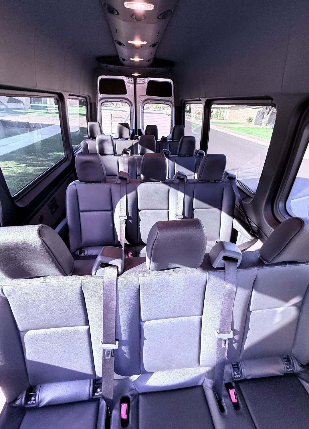 Our 15 Seater Sprinter Van is a stylish and spacious option for large groups who want a smooth and comfortable ride. With its clean exterior, roomy seating, and generous luggage space, this van is ideal for airport transfers, wine tours, golf outings, family travel, Sedona day trips, and special events. It is designed to give your group the comfort, convenience, and flexibility needed for stress free travel. Every ride also includes a complimentary cooler, so your group can enjoy the journey even more.